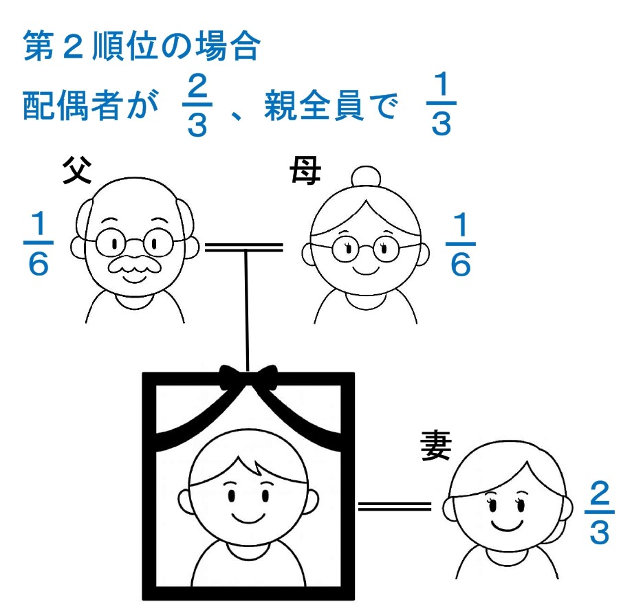 仮に夫が亡くなった場合は、配偶者である妻は必ず相続人になり、その他以下のような順位で相続の権利が発生するよ。
