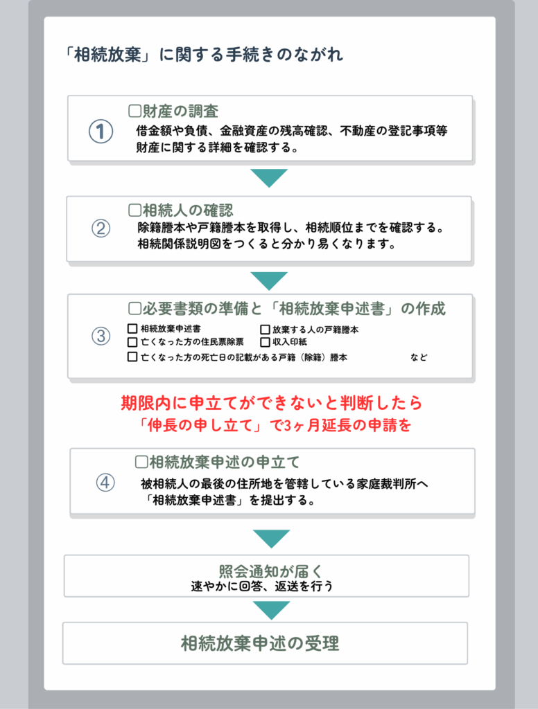 「3か月の期限を延ばす」申立てができる場合もあります(「熟慮期間の伸長」)。