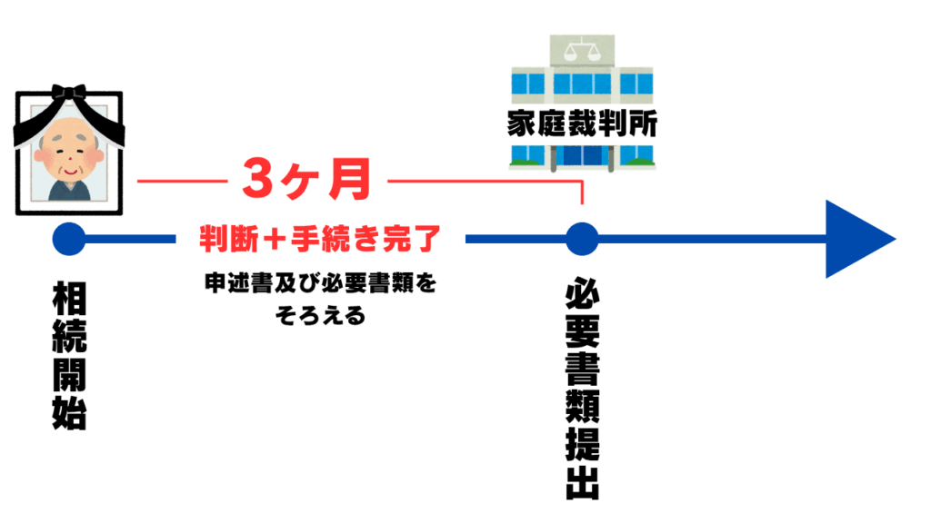 相続放棄は、「自己のために相続の開始があったことを知った時」(一般的には相続が始まった日(=亡くなった日))から3か月以内に家庭裁判所へ手続きする必要があります。